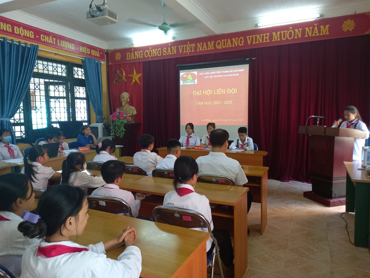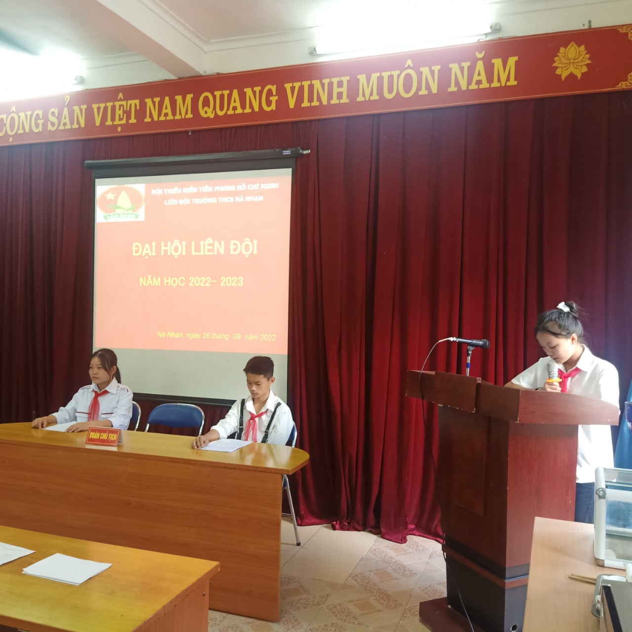 Thực hiện hướng dẫn của Hội đồng Đội thành phố Điện Biên, sự quan tâm, chỉ đạo của Chi bộ, Ban giám hiệu nhà trường. Với mục đích giúp các em đội viên hiểu được Nghị quyết Đại hội, cụ thể hóa Nghị quyết thành những việc làm thiết thực, xây dựng tổ chức Đội TNTP Hồ Chí Minh vững mạnh về tư tưởng chính trị, tổ chức và hành động, góp phần thực hiện thắng lợi nhiệm vụ chương trình công tác năm học. Liên đội trường THCS xã Nà Nhạn đã xây dựng kế hoạch và tổ chức thành công Đại hội liên đội năm học 2022 - 2023.