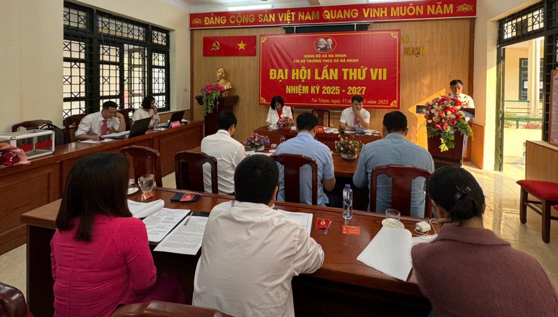 Thực hiện Điều lệ Đảng cộng sản Việt Nam.Thực hiện Kế hoạch của Đảng ủy xã Nà Nhạn, kế hoạch tổ chức Đại hội chi bộ trực thuộc Đảng bộ xã Nà Nhạn.Được sự nhất trí của Ban Thường vụ Đảng ủy xã Nà Nhạn. Sáng ngày 15/3/2025, Chi bộ trường THCS xã Nà Nhạn long trọng tổ chức Đại hội chi bộ lần thứ VII, nhiệm kỳ 2025-2027.