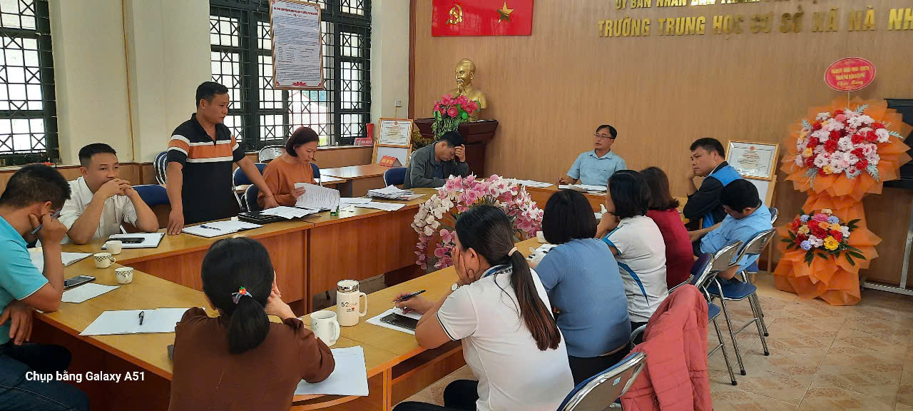 Thực hiện sự chỉ đạo của Đảng uỷ xã Nà Nhạn, chiều ngày 06/12/2024, Chi bộ trường THCS xã Nà Nhạn tổ chức Hội nghị kiểm điểm, đánh giá xếp loại chất lượng Chi bộ, Đảng viên năm 2024. Tham gia cuộc họp có 15 đảng viên với sự chủ trì của đồng chí Dương Trọng Khánh - Bí thư chi bộ, Hiệu trưởng nhà trường.