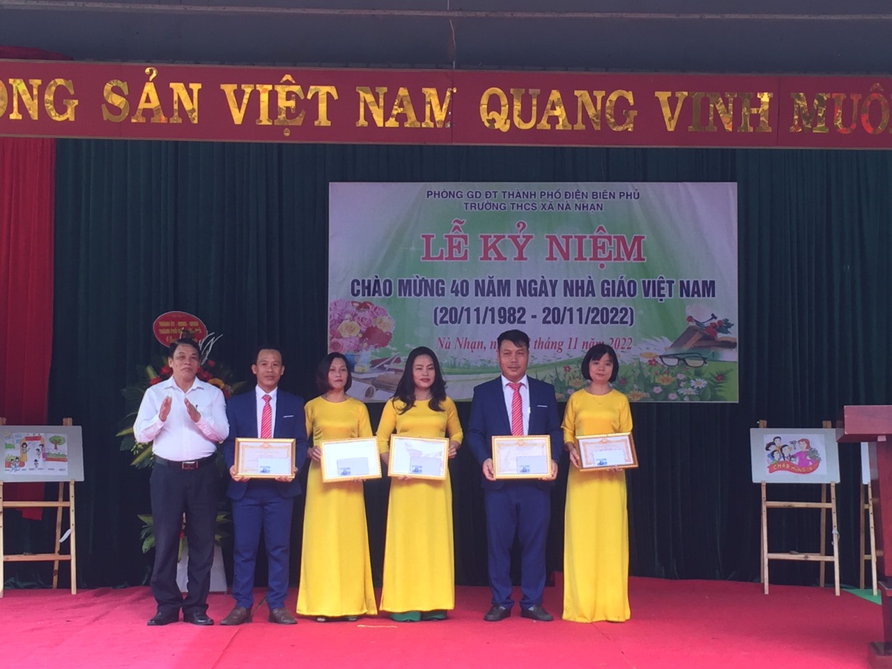 Phát biểu tại buổi lễ, Phó bí thư đảng uỷ xã Nà Nhạn Quàng Văn Đôi đã ôn lại truyền thống “tôn sư trọng đạo” của dân tộc và tri ân các nhà giáo đã dày công vun đắp, bồi dưỡng nhiều thế hệ học sinh xã nhà phát triển như ngày hôm nay. Thực hiện lời dạy của Bác Hồ: “Vì lợi ích 10 năm thì phải trồng cây, vì lợi ích trăm năm thì phải trồng người”, toàn Đảng, toàn dân ta luôn quan tâm chăm lo cho sự nghiệp giáo dục và đào tạo. Dịp này, nhà trường cũng đã khen thưởng các thầy cô giáo, các em học sinh và các tập thể lớp có thành tích xuất sắc trong đợt thi đua thứ nhất.