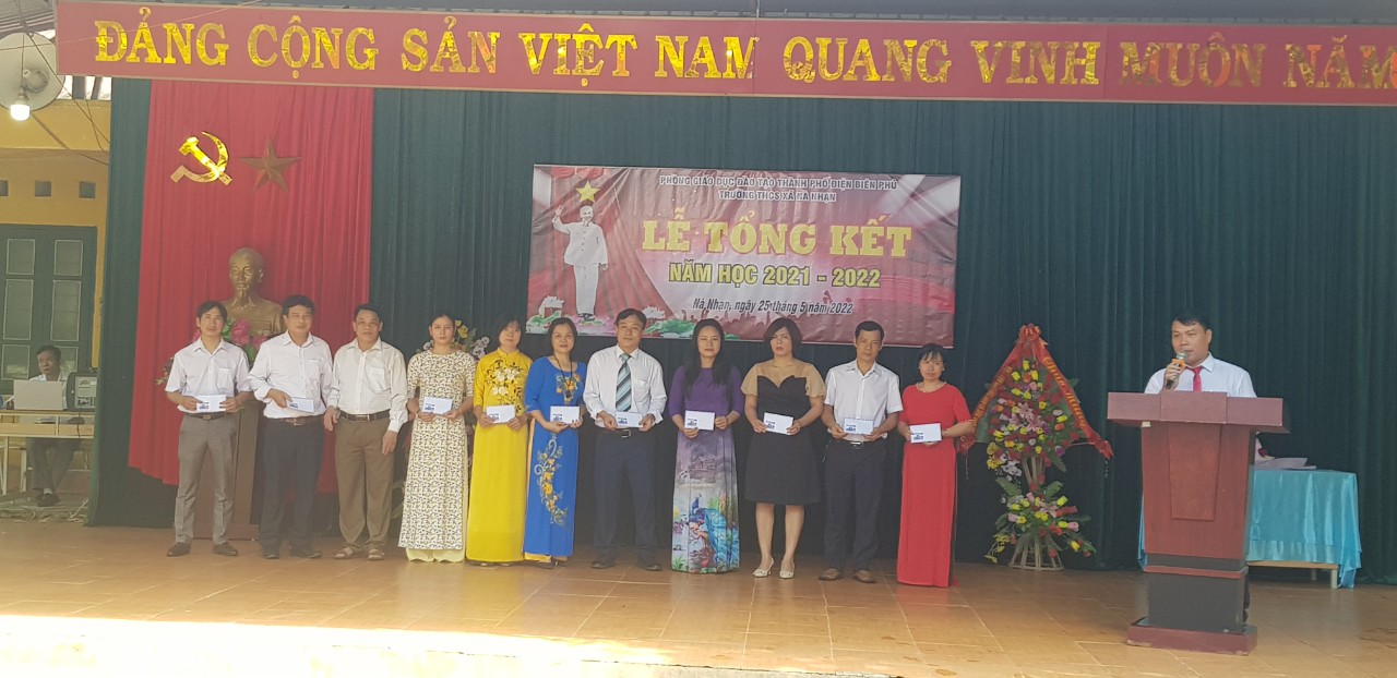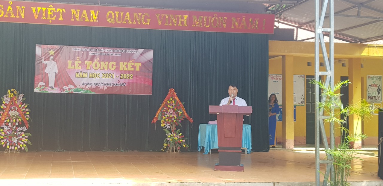 Phát biểu tại buổi lễ, đồng chí Quàng Văn Đôi - Phó bí thư thường trực Đảng ủy xã Nà Nhạn đã chúc mừng và biểu dương những kết quả mà thầy và trò nhà trường đã đạt được. Đồng thời đồng chí cũng mong muốn nhà trường tiếp tục kế thừa và phát huy hơn nữa các thành tích trong năm học tiếp theo. Tiếp thu ý kiến của đồng chí Phó bí thư thường trực Đảng ủy, thầy giáo Dương Trọng Khánh hứa sẽ quyết tâm xây dựng khối đại đoàn kết, thực hiện tốt các nhiệm vụ mà Đảng và nhà nước giao phó. Để ghi nhận những thành tích trong năm học của các cá nhân, tập thể giáo viên, học sinh trong nhà trường, thầy giáo Nguyễn Trọng Thuận – phó bí thư chi bộ, phó hiệu trưởng nhà trường đã thông qua các quyết định khen thưởng nhằm động viên, khích lệ những nỗ lực của thầy và trò nhà trường.
