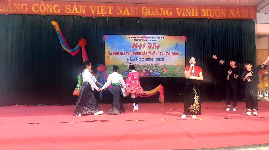 Sáng ngày 21/03/2025, Trường THCS xã Nà Nhạn tổ chức Hội thi “ Tiếng hát tuổi hồng” cấp trường lần thứ I - năm 2025 với Chủ đề Hội thi: “ THIẾU NHI VUI KHOẺ - TIẾN BƯỚC LÊN ĐOÀN”. Tham gia Hội thi có gần 130 học sinh của 12/12 Chi đội; với 36 tiết mục dự thi ở các thể loại: đơn ca, tốp ca, múa và biểu diễn nhạc cụ dân tộc. Các tiết mục dự thi đều được chuẩn bị công phu, bài bản, mỗi Chi đội đem đến hội thi một màu sắc rất riêng, gửi gắm trong đó là tình cảm, lòng biết ơn Đảng, Bác Hồ kính yêu, là tình yêu đối với quê hương đất nước. Hội thi đã góp phần giáo dục truyền thống cách mạng, rèn luyện đạo đức, tư tưởng, ý thức tập thể; phát huy bản sắc văn hóa dân tộc và định hướng thị hiếu âm nhạc, phát hiện các tài năng nghệ thuật, từ những sân chơi này, các em sẽ tự tin để bay cao, bay xa hơn nữa trong những hành trình mới.