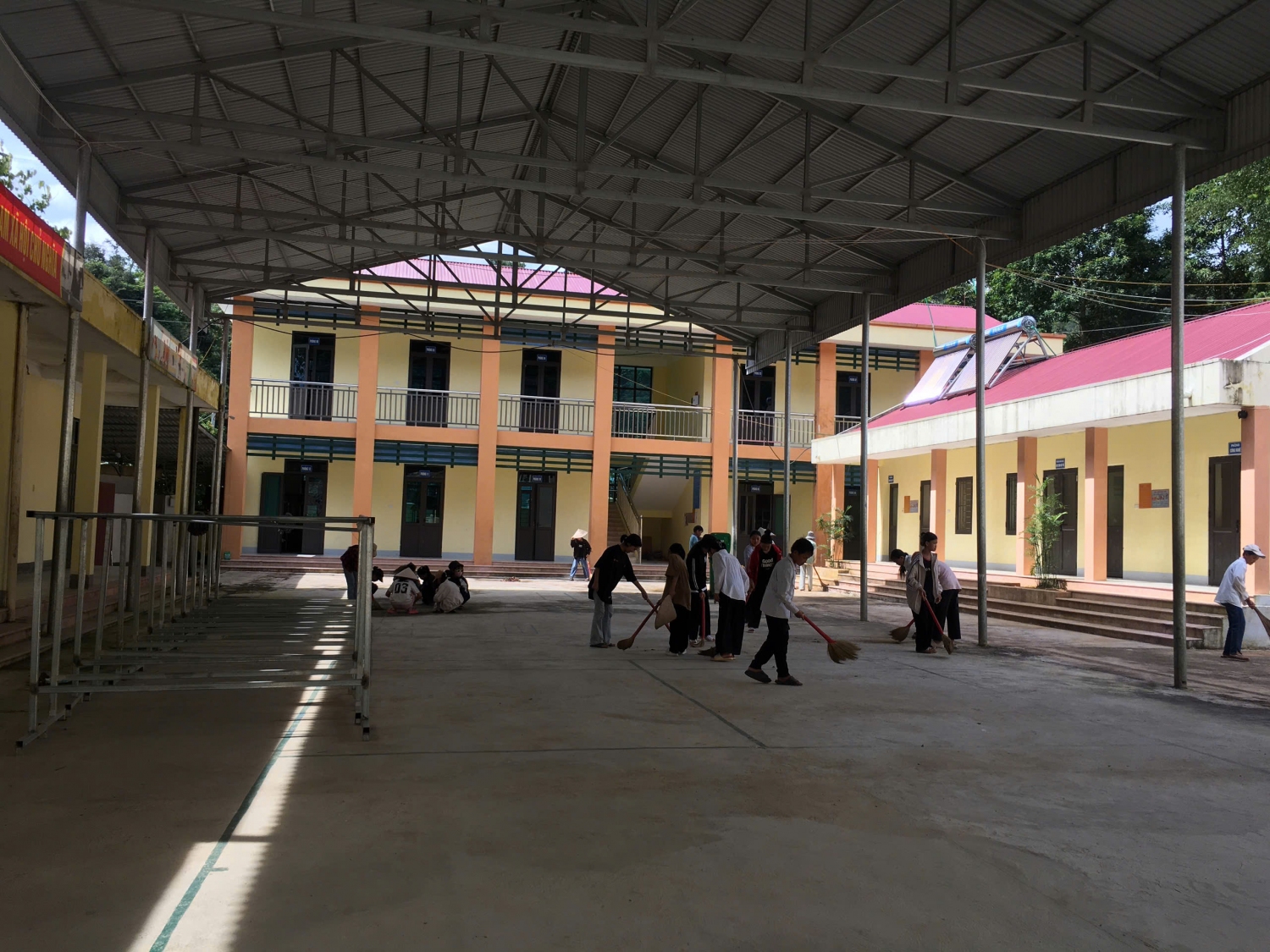 Ngay từ sáng sớm, thầy Dương Trọng Khánh - Hiệu trưởng nhà trường và đông đảo các thầy cô giáo, nhân viên đã có mặt để chào đón các em học sinh lớp 6,7,8,9 tới trường. Nhiều em học sinh lớp 6 lần đầu tiên đến với ngôi trường THCS đã không khỏi bỡ ngỡ, lo lắng dù đi bên cạnh cha, mẹ của mình.