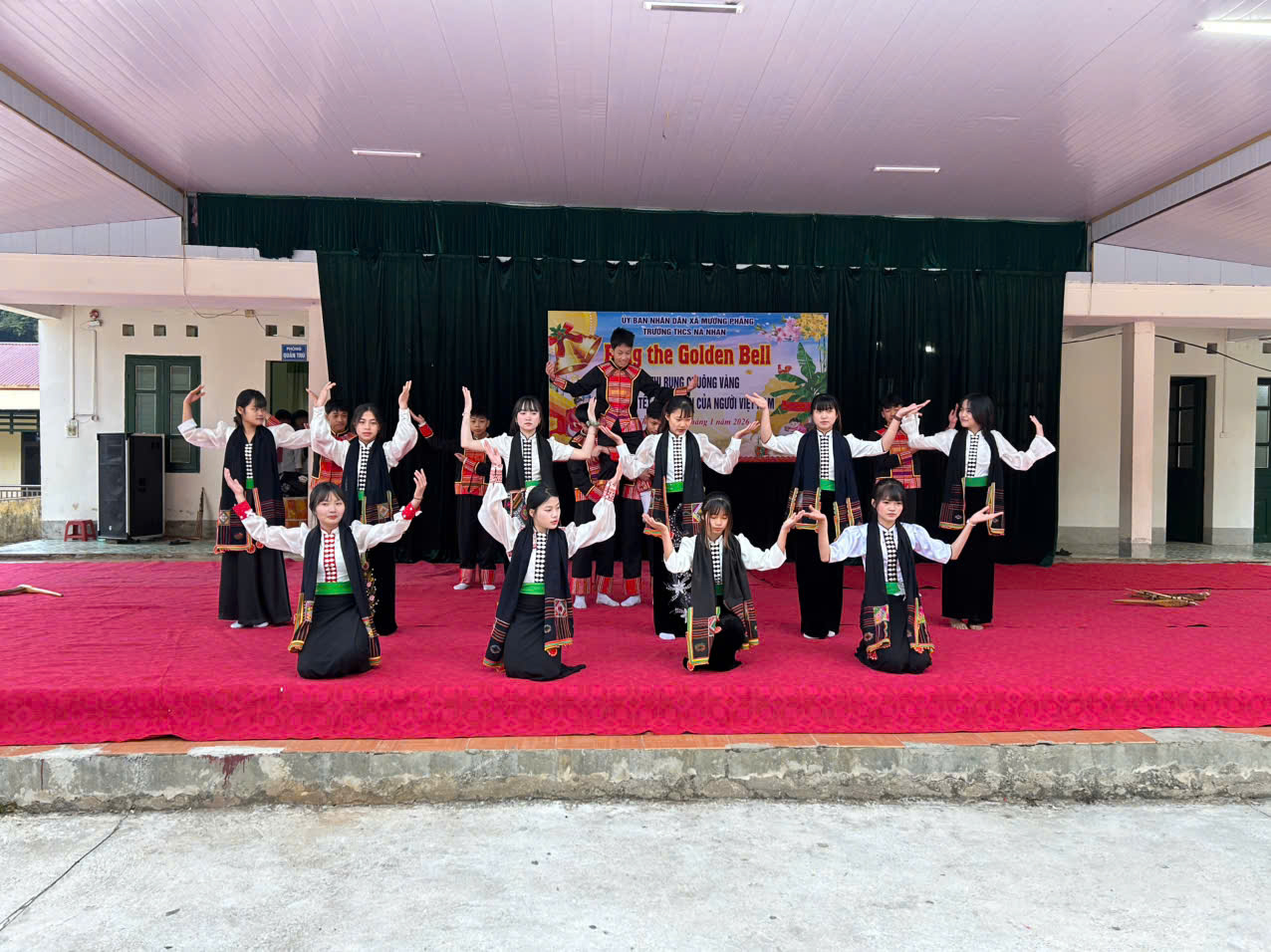 Thực hiện kế hoạch năm học 2025–2026 và các hoạt động trải nghiệm – hướng nghiệp, sáng nay, Liên đội Trường THCS Nà Nhạn đã tổ chức thành công hoạt động ngoại khóa với chủ đề “Chào đón xuân Bính Ngọ 2026”, trọng tâm là Hội thi Rung Chuông Vàng kết hợp giao lưu văn nghệ, trình diễn trang phục dân tộc và các trò chơi dành cho học sinh.