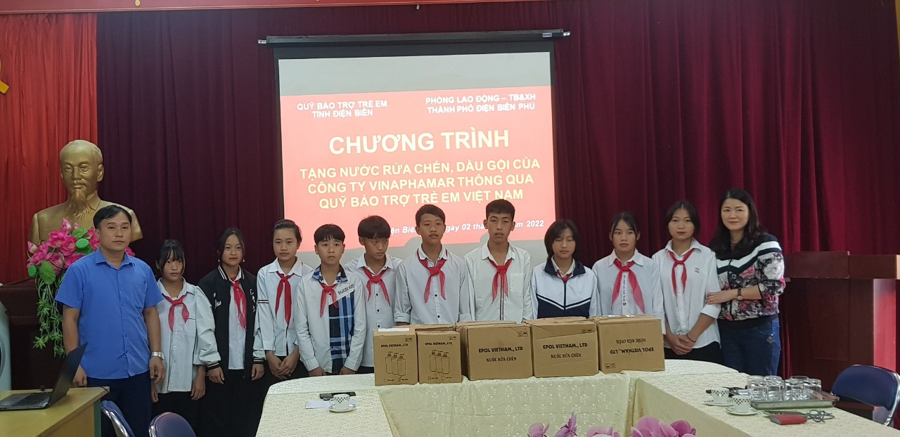 Với tinh thần chia sẻ gắn kết yêu thương, các em đã nhận được nhiều món quà ý nghĩa thông qua quỹ bảo trợ trẻ em tỉnh Điện Biên của công ty Vinapharma. Các món quà được trao đến các em có hoàn cảnh khó khăn như dầu gội , sữa tắm, nước rửa chén, bát . Đây là hoạt động có ý nghĩa thiết thực nhằm động viên, khích lệ các em trong hoàn cảnh khó khăn có thêm niềm tin vươn lên trong học tập.