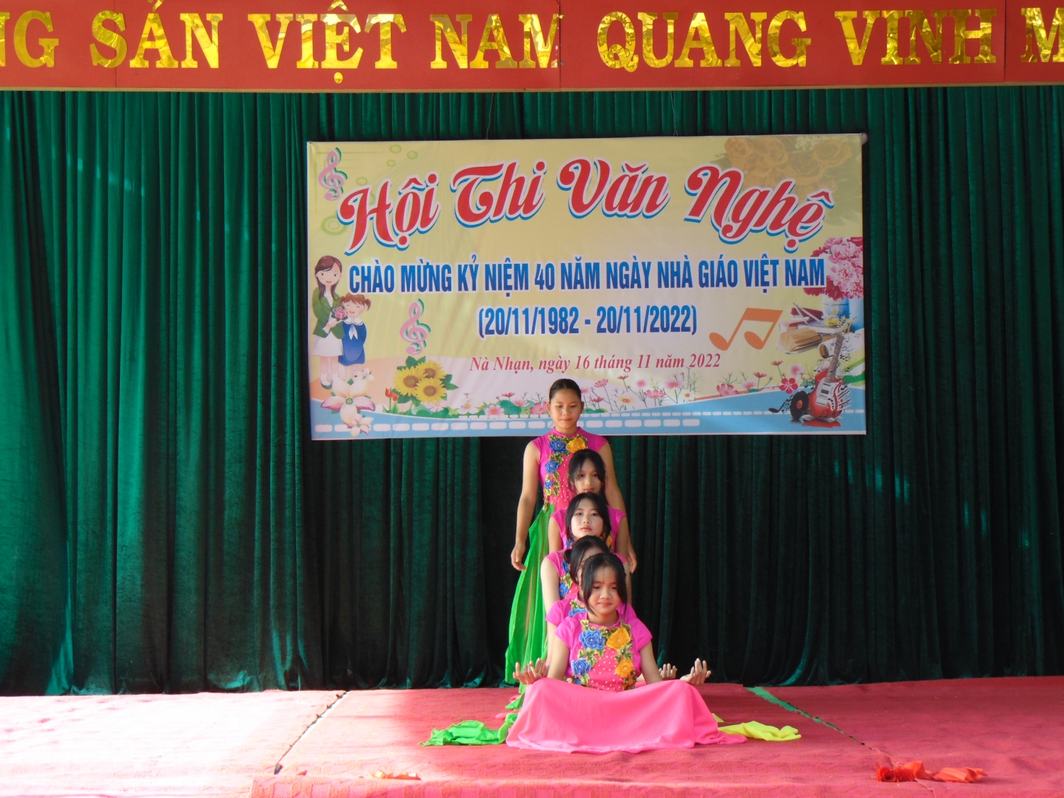 Nằm trong chuỗi các hoạt động thi đua, hướng tới kỷ niệm 40 năm ngày nhà giáo Việt Nam (20/11/1982- 20/11/2022) nhằm tôn vinh, ngợi ca người thầy cũng như thúc đẩy phong trào văn hóa, văn nghệ, giao lưu học hỏi, tạo sân chơi bổ ích cho các em học sinh, ngày 16/11/2022 tại trường THCS xã Nà Nhạn đã diễn ra Hội thi văn nghệ, báo tường chào mừng kỷ niệm 40 năm Ngày Nhà giáo Việt Nam.