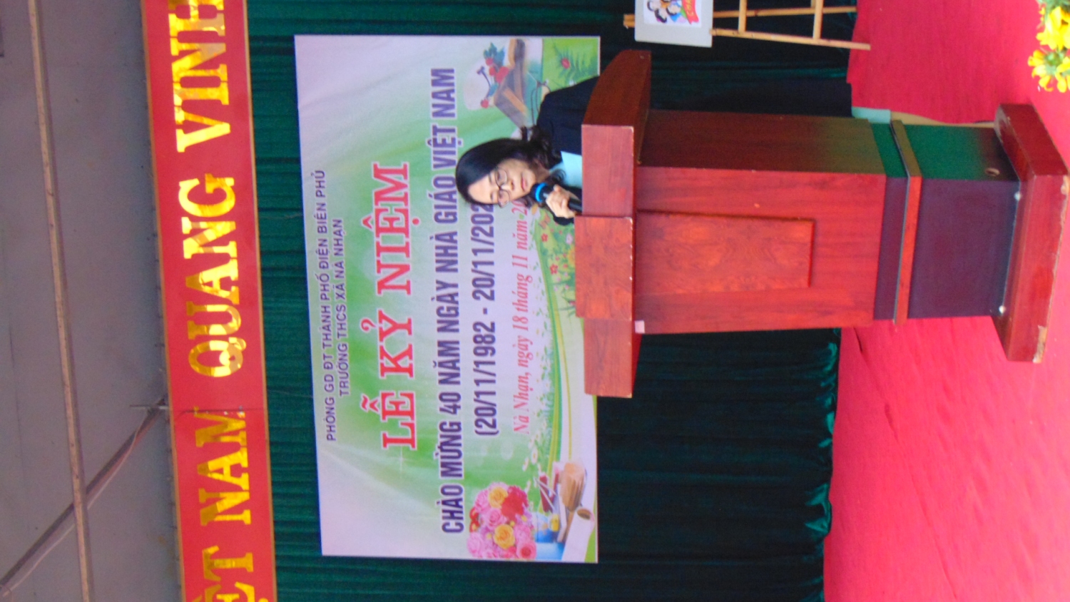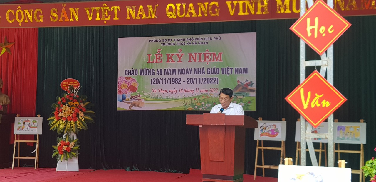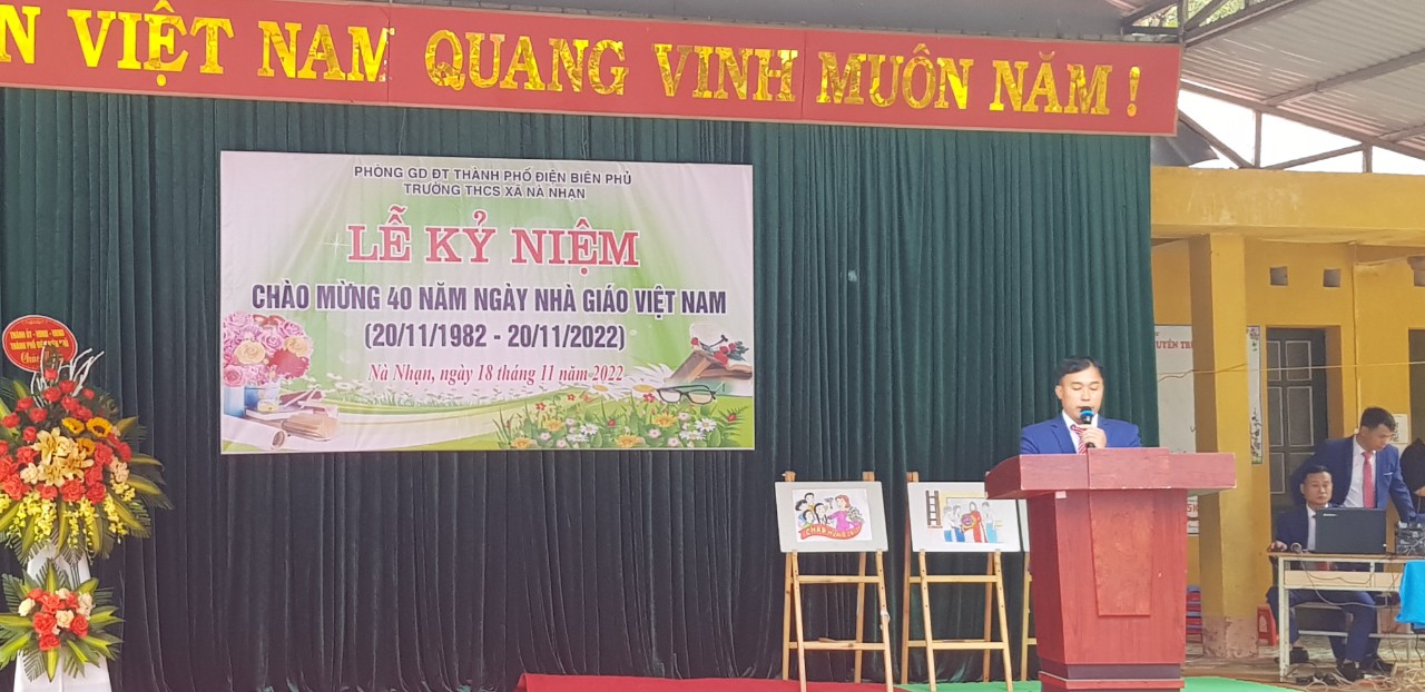Phát biểu tại buổi lễ, Phó bí thư đảng uỷ xã Nà Nhạn Quàng Văn Đôi đã ôn lại truyền thống “tôn sư trọng đạo” của dân tộc và tri ân các nhà giáo đã dày công vun đắp, bồi dưỡng nhiều thế hệ học sinh xã nhà phát triển như ngày hôm nay. Thực hiện lời dạy của Bác Hồ: “Vì lợi ích 10 năm thì phải trồng cây, vì lợi ích trăm năm thì phải trồng người”, toàn Đảng, toàn dân ta luôn quan tâm chăm lo cho sự nghiệp giáo dục và đào tạo. Dịp này, nhà trường cũng đã khen thưởng các thầy cô giáo, các em học sinh và các tập thể lớp có thành tích xuất sắc trong đợt thi đua thứ nhất.