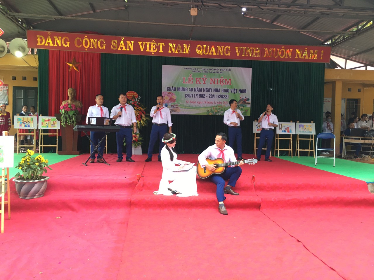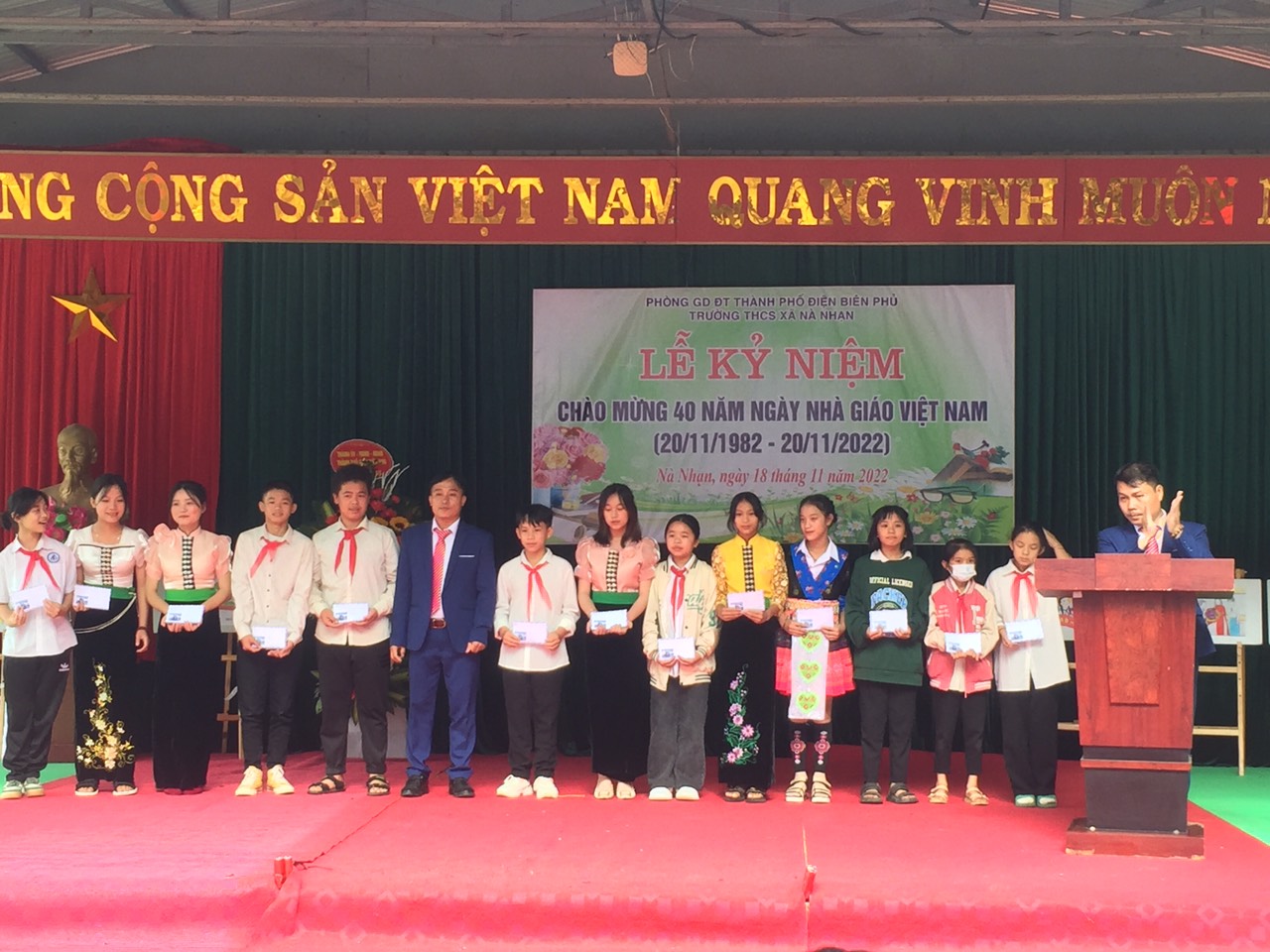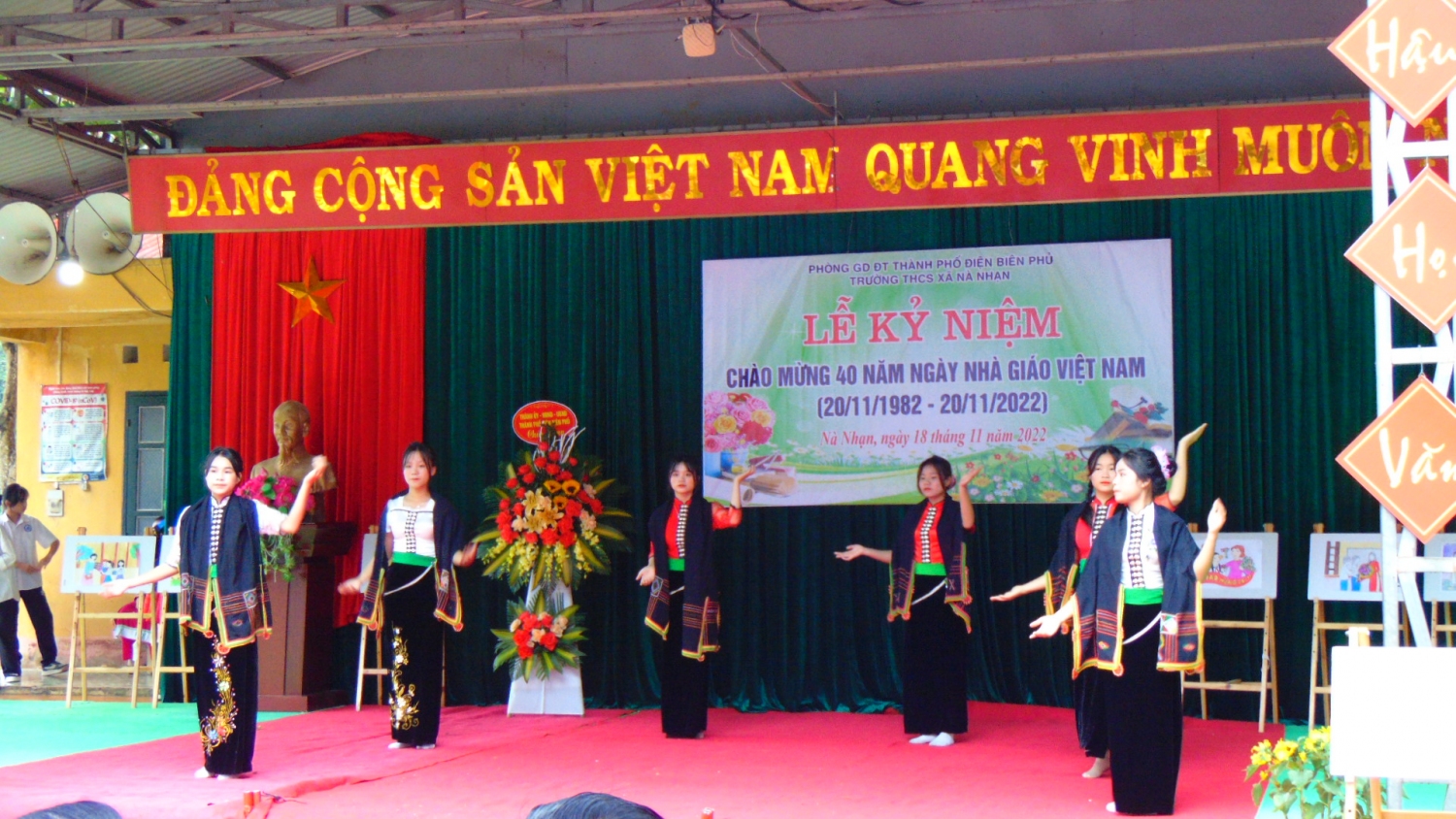 Phát biểu tại buổi lễ, Phó bí thư đảng uỷ xã Nà Nhạn Quàng Văn Đôi đã ôn lại truyền thống “tôn sư trọng đạo” của dân tộc và tri ân các nhà giáo đã dày công vun đắp, bồi dưỡng nhiều thế hệ học sinh xã nhà phát triển như ngày hôm nay. Thực hiện lời dạy của Bác Hồ: “Vì lợi ích 10 năm thì phải trồng cây, vì lợi ích trăm năm thì phải trồng người”, toàn Đảng, toàn dân ta luôn quan tâm chăm lo cho sự nghiệp giáo dục và đào tạo. Dịp này, nhà trường cũng đã khen thưởng các thầy cô giáo, các em học sinh và các tập thể lớp có thành tích xuất sắc trong đợt thi đua thứ nhất.