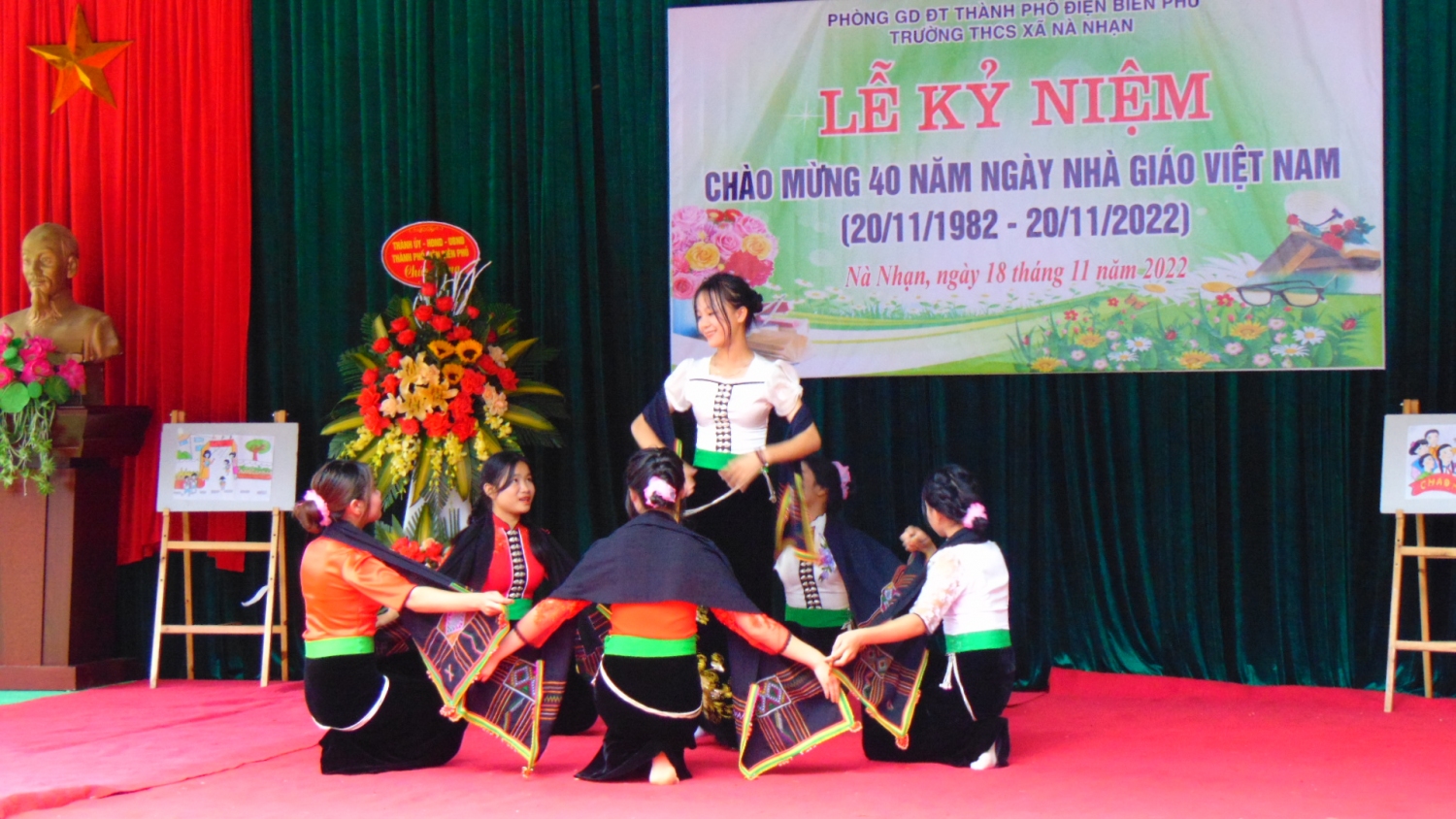 Sáng 18/11/2022, Trường THCS xã Nà Nhạn đã tưng bừng tổ chức Lễ kỷ niệm 40 năm Ngày Nhà giáo Việt Nam (20/11/1982 - 20/11/2022) và khen thưởng các thầy cô, học sinh và các tập thể lớp có thành tích xuất sắc trong đợt thi đua thứ nhất của năm học 2022 – 2023.