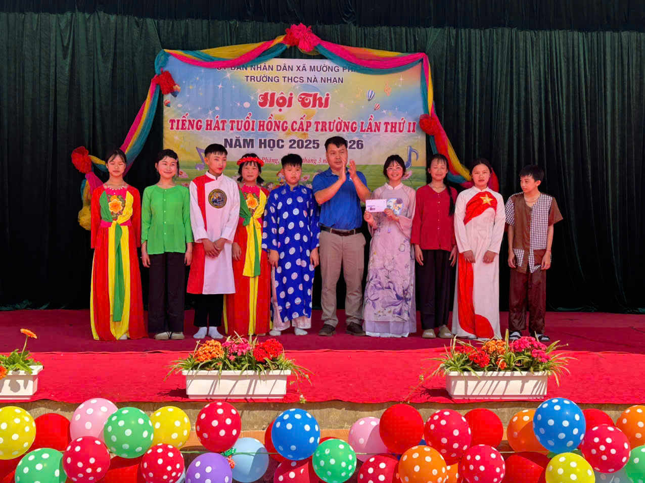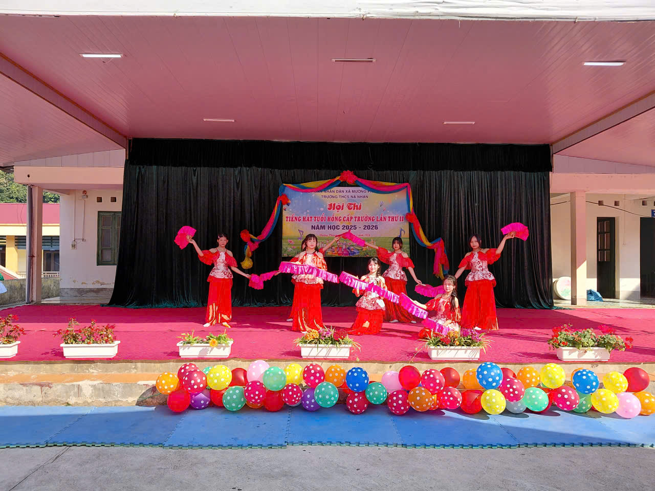 Sáng ngày 24/03/2026, Trường THCS Nà Nhạn đã tổ chức Hội thi “Tiếng hát tuổi hồng” cấp trường lần thứ II, năm học 2025–2026 trong không khí sôi nổi và đầy hào hứng. Đây là sân chơi nghệ thuật ý nghĩa, tạo cơ hội cho học sinh thể hiện năng khiếu ca hát, múa và niềm đam mê nghệ thuật của mình.